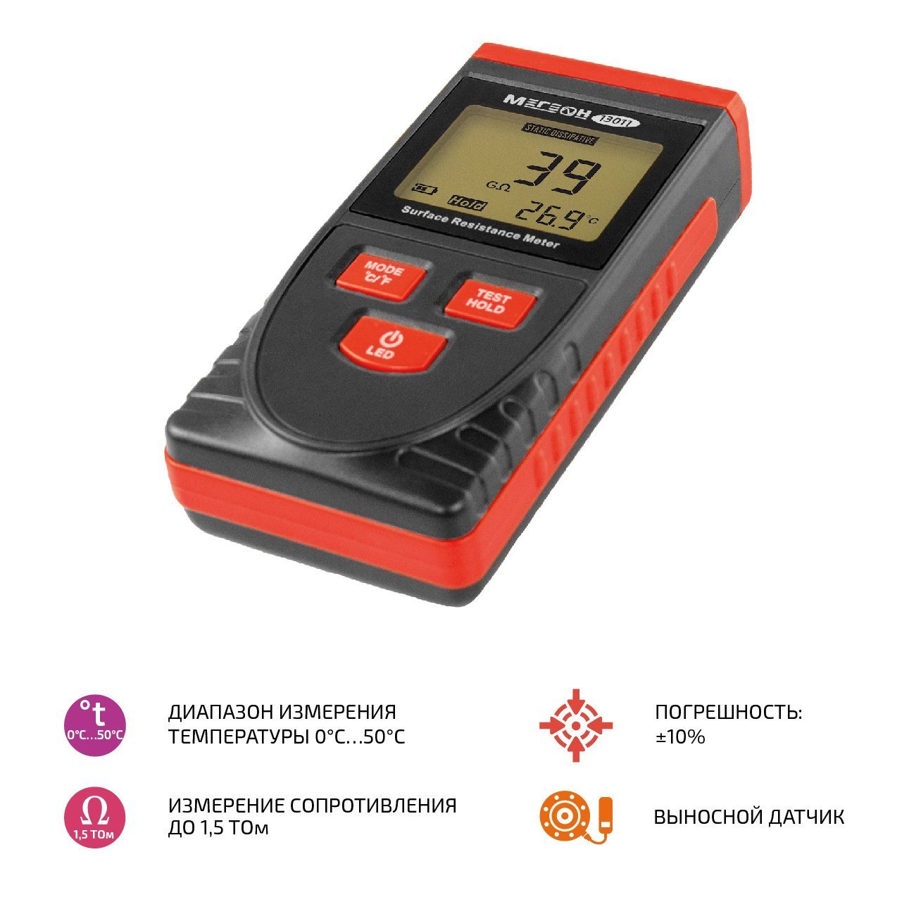 Измеритель сопротивления поверхности МЕГЕОН 13011 представляет собой специализированный прибор, предназначенный для оценки электрических свойств поверхностей различных материалов. Этот прибор широко используется в промышленности, науке и технике для анализа и контроля качества материалов, а также для исследований в области электрохимии и электроники.