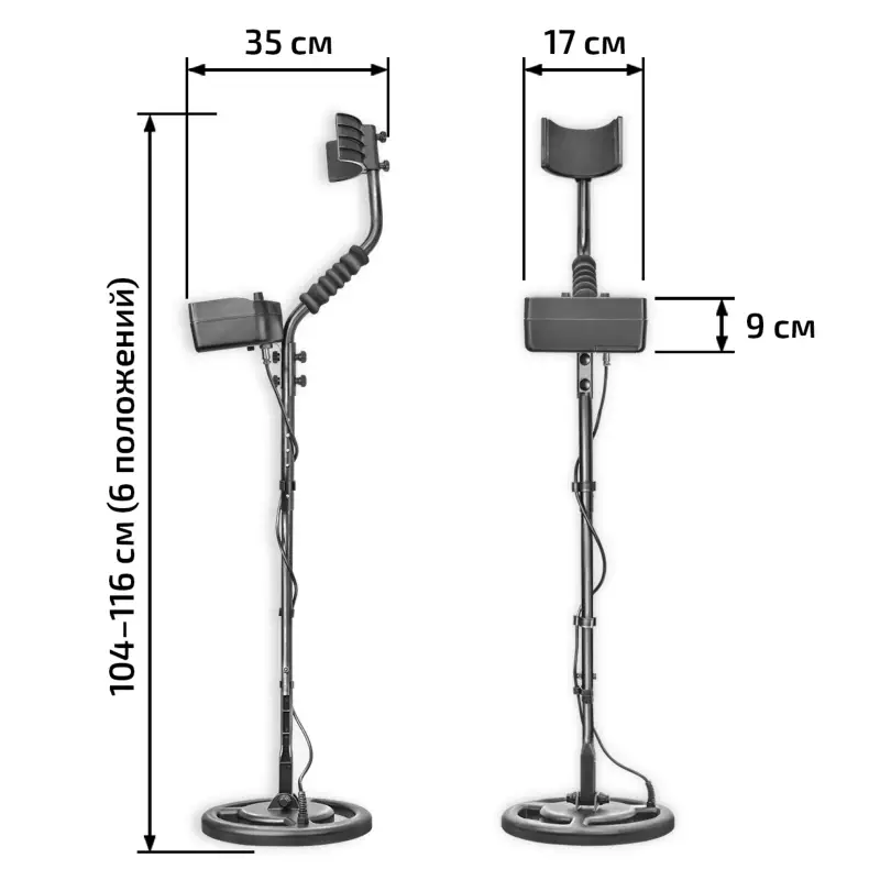 Максимальная глубина обнаружения* | На открытом пространстве до 1,5 м (алюминиевая пластина 50х50х1,2 см), до 30 см (монета 10 рублей) |